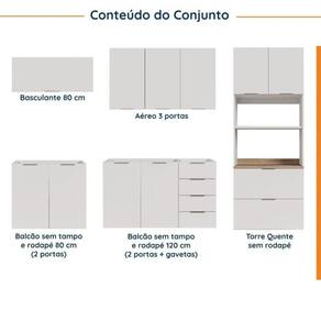 Cozinha Modulada 5 Peças Sem Tampo 2 Aéreos 2 Balcões 1 Torre Quente Ipanema CabeCasa MadeiraMadeira Branco