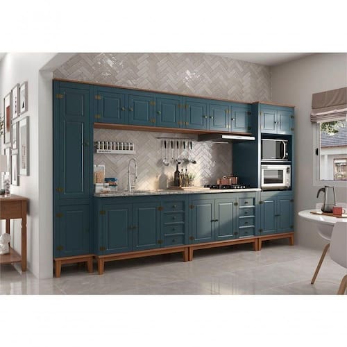 A Cozinha Modulada 6 Peças Azul Petróleo da La Decora é completamente cheio de charme e elegância. Com estilo rústico que agrega luxo e conforto à decoração, é ideal para compor ambientes de cozinha e copa.