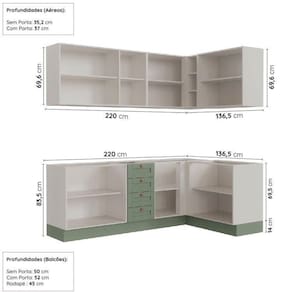 1x Balcão para Pia 120cm sem Tampo Arizona Branco/Menta Largura: 120 cm Altura: 92,5 cm Peso: 51,3 kg Profundidade: 52 cm Necessita Montagem: Sim