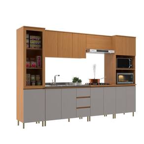 Compõe a cozinha: 1 Paneleiro torre quente 4 Portas 70cm 1 Armário Aéreo 3 Portas 120cm 1 Armário 1 Porta basculante 80cm 1 Paneleiro 2 Portas com vidro 50cm 1 Balcão para pia 2 Portas 3 gavetas 120cm, sem tampo e sem pia 1 Balcão 2 Portas 80cm