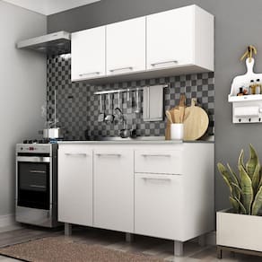 Cozinha modulada Iara é funcional e prático. Com este móvel você poderá organizar melhor sua cozinha, dando uma organização de organização e planejamento ao local. Perfeita para espaços menores!