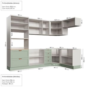 1x Aéreo de Canto Oblíquo Arizona Branco/Menta Largura: 79,7 cm Altura: 69,6 cm Peso: 30 kg Profundidade: 79,7 cm Necessita Montagem: Sim