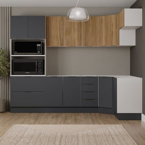1x Balcão Canto Oblíquo sem Tampo com Rodapé Puxador 150mm Ipanema Grafite Trama/Branco Largura: 80 cm Altura: 83,5 cm Peso: 31,65 kg Profundidade: 80 cm Necessita Montagem: Sim