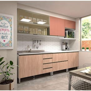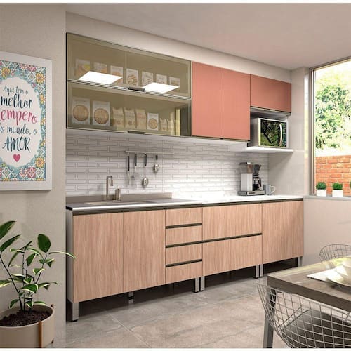Cozinha Modulada Compacta 7 Peças Sem Tampo De 120 Branco Com Cumaru E Gaia Pérola Luciane Móveis Branco Polar Com Gaia E Cumaru