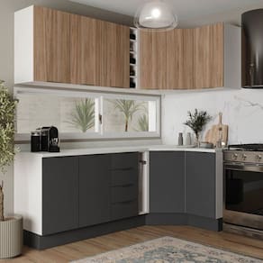 1x Balcão Canto Oblíquo com Tampo com Rodapé Puxador 150cm Ipanema Cabecasa Madeiramadeira Grafite Trama/Branco Largura: 80 cm Altura: 93 cm Profundidade: 80 cm Necessita Montagem: Sim