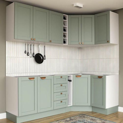 1x Balcão de Canto Oblíquo Sem Tampo Arizona Branco/Menta