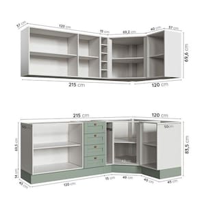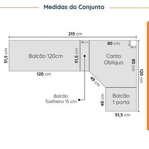A Cozinha Modulada Arizona sem tampo é formada por 3 Aéreos 4 Balcões, 1 Adega e Toalheiro, as portas e frentes de gaveta são feitas em MDF e possuem acabamento em Finish Foil com dobradiças com amortecimento, possibilitando fechamento soft closing. Possuem fita de borda em PVC, conferindo alta durabilidade e proteção contra umidade ao móvel.