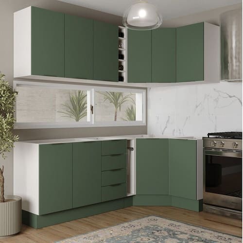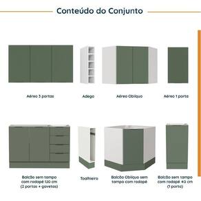 1x Balcão Canto Oblíquo sem Tampo com Rodapé Puxador 150mm Ipanema Verde Folha/Branco