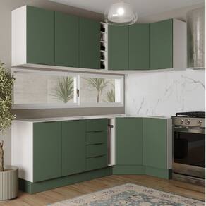 1x Armário Aéreo Canto Oblíquo 2 Portas Ipanema Verde Folha/Branco