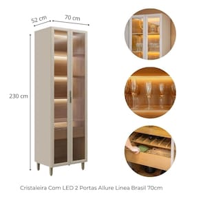 Conjunto Allure 02 Modelo A02M4 e composto por: 01 Balcao de Cozinha Allure Linea Brasil 120cm Sem Tampo MDF 01 Cristaleira com LED 2 Portas Allure Linea Brasil 70cm 01 Armario Aereo Allure Linea Brasil 120cm com LED e Nicho Decorativo 01 Armario Aereo Basculante Allure Linea Brasil 80cm MDF 01 Balcao com Tampo Allure Linea Brasil 80cm 100 MDF