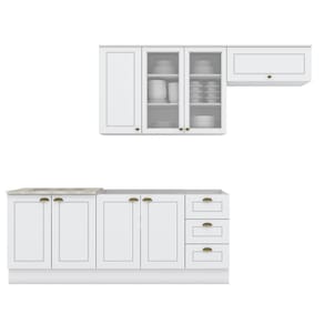 A Cozinha Modulada Americana 4 Peças da Móveis Henn é perfeita para quem busca elegância e praticidade no ambiente. Produzida em MDF com pintura UV, conta com frentes com usinagem em baixo relevo, portas com dobradiças metálicas com amortecimento e puxadores em zamac ouro velho sendo pontuais nas portas superiores e concha nas inferiores. O aéreo de 120cm possui 2 portas com vidro incolor, trazendo leveza ao visual. O balcão de 120cm acompanha divisor de talheres (sem tampo e cuba), enquanto o balcão de 80cm vem com tampo em MDP para cooktop. Pés com regulagem e excelente espaço interno completam esse conjunto sofisticado.