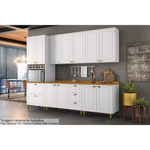 - Paneleiro de Cozinha Americana c/ 2 Portas 1 Nicho p/ forno e 2 Gavetas 71x220cm Branco/Nature - Henn - 1 unidades Dimensões: Alt: 54cm x Larg221cm x Comp/Profund:221cm