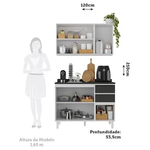 1-Armário Aéreo 120cm 3 Portas Dora Luciane Móveis -60 x 120 x 30- 1-Balcão de Pia sem Tampo 120cm 3 Portas e 2 Gavetas Dora Luciane Móveis -82,5 x 120 x 53- 1-Tampo para Balcão 120cm MDP Linea Luciane Móveis -2,5 x 120 x 53-