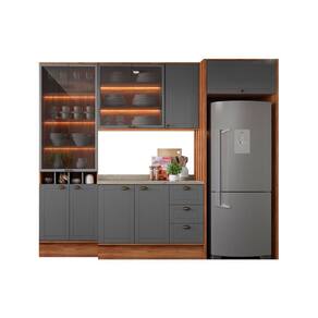 Cozinha Modulada Carraro Bella 6 Peças (2Aéreos+1Balcão+1Cristaleira+2Complementos) C6P77 Nogal/Cinza-Carraro - Blush