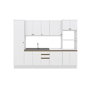 A perfeita união entre estilo e qualidade você encontra no Combo CB1084 da Cozinha Celeste da Kappesberg. Produzida em chapa MDF de 15mm, ela garante robustez, firmesa e qualidade, além de um acabamento perfeito. E com sete camadas de pintura na cor branco, tanto na parte interna quanto na externa, seu acabamento em brilho, além de combinar com todos os ambientes, aumenta a luminosidade do espaço, deixando sua cozinha perfeita. Com seis módulos mais tampo, o conjunto possui 2,30m de altura e 3m de largura, combinando estilo e qualidade para todos os ambientes. E com amplo espaço interno e módulo para forno e microondas, você poderá organizar louças e mantimentos, além de preparar receitas especiais e deliciosas para receber sua família ou amigos. E para um melhor acabamento, a cozinha possui rodapés, mas também acompanha as ferragens para ser montada suspensa, do jeito que você preferir. Os diferenciais ficam por conta das dobradiças com amortecimento, garantindo um fechamento suave e sem ruídos, das corrediças telescópicas e os puxadores na cor dourada, complementando o estilo e qualidade do produto. Viva momentos especiais e renove seu espaço com a Cozinha Celeste da Kappesberg.