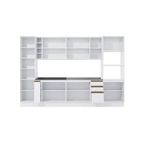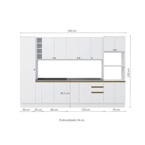 A perfeita união entre estilo e qualidade você encontra no Combo CB1081 da Cozinha Celeste da Kappesberg. Produzida em chapa MDF de 15mm, ela garante robustez, firmesa e qualidade, além de um acabamento perfeito. E com sete camadas de pintura na cor branco, tanto na parte interna quanto na externa, seu acabamento em brilho, além de combinar com todos os ambientes, aumenta a luminosidade do espaço, deixando sua cozinha perfeita. Com oito módulos mais tampos, o conjunto possui 2,30m de altura e 3,40m de largura, combinando estilo e qualidade para todos os ambientes. E com amplo espaço interno, você poderá organizar louças e mantimentos, além de preparar receitas especiais e deliciosas para receber sua família ou amigos. E para um melhor acabamento, a cozinha possui rodapés, mas também acompanha as ferragens para ser montada suspensa, do jeito que você preferir. Os diferenciais ficam por conta das dobradiças com amortecimento, garantindo um fechamento suave e sem ruídos, das corrediças telescópicas e os puxadores na cor dourada, complementando o estilo e qualidade do produto. Viva momentos especiais e renove seu espaço com a Cozinha Celeste da Kappesberg.