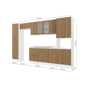 A perfeita união entre estilo e qualidade você encontra no Combo CB1083 da Cozinha Celeste da Kappesberg. Produzida em chapa MDF de 15mm, ela garante robustez, firmesa e qualidade, além de um acabamento perfeito. E com sete camadas de pintura, tanto na parte interna quanto na externa, a caixaria conta com acabamento em brilho na cor branca, enquanto que as frentes, com pintura touch na cor nogueira, possui a textura dos veios da madeira, uma combinação aconchegante e linda, deixando sua cozinha perfeita. Com oito módulos mais tampo, o conjunto possui 2,30m de altura e 3,60m de largura, combinando estilo e qualidade para todos os ambientes. E com amplo espaço interno e módulo para forno ou microondas, você poderá organizar louças e mantimentos, além de preparar receitas especiais e deliciosas para receber sua família ou amigos. Um conjuto prático e versátil, que se torna ainda mais sofisticado com o aéreo de 2 portas com vidro reflecta e moldura. E para um melhor acabamento, a cozinha possui rodapés, mas também acompanha as ferragens para ser montada suspensa, do jeito que você preferir. Os diferenciais ficam por conta das dobradiças com amortecimento, garantindo um fechamento suave e sem ruídos, das corrediças telescópicas e os puxadores na cor dourada, complementando o estilo e qualidade do produto. Viva momentos especiais e renove seu espaço com a Cozinha Celeste da Kappesberg.