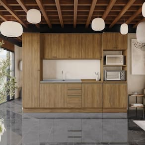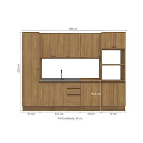 A perfeita união entre estilo e qualidade você encontra no Combo CB1084 da Cozinha Celeste da Kappesberg. Produzida em chapa MDF de 15mm, ela garante robustez, firmesa e qualidade, além de um acabamento perfeito. E com sete camadas de pintura, tanto na parte interna quanto na externa, a caixaria possui pintura touch na cor nogueira Com sete módulos mais tampo, o conjunto possui 2,30m de altura e 3m de largura, combinando estilo e qualidade para todos os ambientes. E com amplo espaço interno e módulo para forno e microondas, você poderá organizar louças e mantimentos, além de preparar receitas especiais e deliciosas para receber sua família ou amigos. E para um melhor acabamento, a cozinha possui rodapés, mas também acompanha as ferragens para ser montada suspensa, do jeito que você preferir. Os diferenciais ficam por conta das dobradiças com amortecimento, garantindo um fechamento suave e sem ruídos, das corrediças telescópicas e os puxadores na cor dourada, complementando o estilo e qualidade do produto. Viva momentos especiais e renove seu espaço com a Cozinha Celeste da Kappesberg.