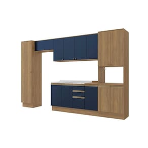 Acabamento: Pintura Fosco / Pintura Touch | Cor: Nogueira/Azul Profundo | Corrediças: Telescópicas | Dobradiça: Com Amortecimento / Sem Amortecimento | Garantia: 3 meses para defeito de fabricação | Matéria-prima: MDF / MDP | Peso suportado por cada gaveta: 6 Kg | Peso suportado por cada prateleira: 7 kg | Puxadores: Alumínio / Metálicos / Puxadores de Metal e de Alumínio | Quantidade de gavetas: 3 | Quantidade de portas: 1 / 3 | Quantidade de prateleiras: 1 / 2 / 4 / 5 | Sistema de montagem: Parafuso Philips | Tipo de porta: Bater | Tipo de móveis de cozinha: Cozinha completa