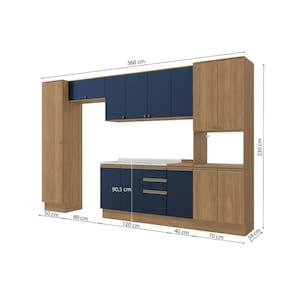 A perfeita união entre estilo e qualidade você encontra no Combo CB1304 da Cozinha Celeste da Kappesberg. Produzida em chapa MDF de 15mm, ela garante robustez, firmeza e qualidade, além de um acabamento perfeito. E com até sete camadas de pintura, a caixaria e as frentes do kit forno e paneleiro possuem acabamento touch na cor nogueira, com a textura dos veios da madeira, enquanto as frentes dos balcões e aéreos são em pintura fosca na cor azul profundo. Uma combinação linda, marcante e moderna, que garantirá destaque e um diferencial único ao seu espaço, deixando sua cozinha perfeita. Com sete módulos mais o tampo, o conjunto possui 2,30m de altura e 3,60m de largura, combinando estilo e qualidade para todos os ambientes. E com amplo espaço interno e módulo para forno ou microondas, você poderá organizar louças e mantimentos, além de preparar receitas especiais e deliciosas para receber sua família ou amigos. E para um melhor acabamento, a cozinha possui rodapés, mas também acompanha as ferragens para ser montada suspensa, do jeito que você preferir. Os diferenciais ficam por conta das dobradiças com amortecimento, garantindo um fechamento suave e sem ruídos, das corrediças telescópicas e os puxadores na cor dourada, complementando o estilo e qualidade do produto. Viva momentos especiais e renove seu espaço com a Cozinha Celeste da Kappesberg.