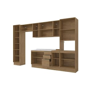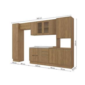 A perfeita união entre estilo e qualidade você encontra no Combo CB1083 da Cozinha Celeste da Kappesberg. Produzida em chapa MDF de 15mm, ela garante robustez, firmesa e qualidade, além de um acabamento perfeito. E com sete camadas de pintura na cor nogueira, tanto na parte interna quanto na externa, seu acabamento touch, com a textura dos veios da madeira, além de combinar com todos os ambientes, garante a sensação de conforto e aconchego ao espaço, remetendo aos tons da natureza e deixando sua cozinha perfeita. Com oito módulos mais tampo, o conjunto possui 2,30m de altura e 3,60m de largura, combinando estilo e qualidade para todos os ambientes. E com amplo espaço interno e módulo para forno ou microondas, você poderá organizar louças e mantimentos, além de preparar receitas especiais e deliciosas para receber sua família ou amigos. Um conjuto prático e versátil, que se torna ainda mais sofisticado com o aéreo de 2 portas com vidro reflecta e moldura. E para um melhor acabamento, a cozinha possui rodapés, mas também acompanha as ferragens para ser montada suspensa, do jeito que você preferir. Os diferenciais ficam por conta das dobradiças com amortecimento, garantindo um fechamento suave e sem ruídos, das corrediças telescópicas e os puxadores na cor dourada, complementando o estilo e qualidade do produto. Viva momentos especiais e renove seu espaço com a Cozinha Celeste da Kappesberg.