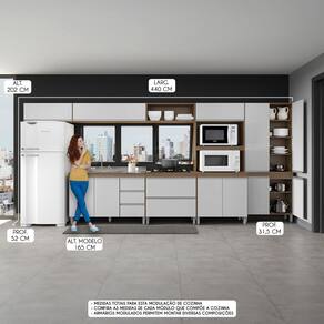 A Cozinha Sabrina Modulada foi desenvolvida para atender todas as suas necessidades do dia a dia com um design moderno, funcionalidade e versatilidade. A Cozinha Modulada e a tendencia do momento e foi arquitetada com modulos uteis que vao facilitar a sua rotina diaria, preparos dos alimentos e armazenamento dos utensilios e mantimentos, mantendo sua cozinha sempre organizada. Por se tratar de armarios de cozinha modulados voce pode ajustar os modulos conforme o espaco disponivel e montar diversas modulacoes diferentes para deixar o ambiente muito mais aconchegante. A elegancia fica por conta dos puxadores em perfil e os pes dando um toque unico de sofisticacao. A Cozinha Sabrina e produzida com materiais de excelente qualidade, garantindo a durabilidade e vida util. O melhor em moveis no design atual aliando conforto, qualidade e otimos precos!