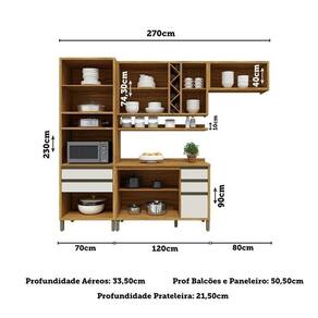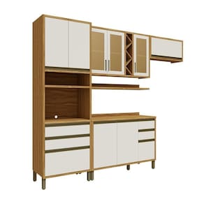 Cozinha Modulada Compacta 4 Peças 9 Portas com Vidro e Tampo 100% Mdf Barbados Espresso Móveis Amêndoa/Off White - Bege