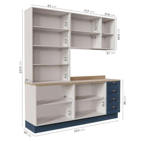 A Cozinha Modulada compacta Arizona é indicada para quem tem pouco espaço e está buscando um móvel compacto, bonito e funcional. Possui portas com molduras, dobradiças com amortecimento e gavetas com corrediças telescópicas. Para segurança, produto utiliza kit anti tombamento, sendo necessário parafusar à parede. Altura do Conjunto: 135 cm Ambiente: null Ambiente Principal: Cozinha Cor: Branco/Azul Informação Complementar: 1x Balcão para Pia 120cm Arizona Branco/AzulLargura: 120Altura: 92,5 cmPeso: 51.3Profundidade: 52Necessita Montagem: Sim1x Balcão 2 Portas 80cm Arizona Branco/AzulLargura: 80Altura: 92.5Peso: 27.7Profundidade: 52Necessita Montagem: Sim1x Armário Aéreo 3 Portas 120cm Arizona Branco/AzulLargura: 120Altura: 68,6 cmPeso: 27.3Profundidade: 37Necessita Montagem: Sim1x Armário Aéreo 2 Portas 135cm com Porta de Vidro Arizona Branco/AzulLargura: 80Altura: 135Peso: 35.2Profundidade: 37Necessita Montagem: Sim Tamanho: