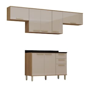 Cozinha Modulada Compacta 4 Peças Com Tampos Isis Luciane Mó Avelã/mocca Laca Cozinha Modulada Compacta 4 Pecas com Tampos Isis Luciane Moveis Desenvolvida com materiais de excelencia, a Cozinha Isis oferece excelente distribuicao de espaco interno. E estruturada em 100 MDP e possui dobradicas slow motion com amortecedor incorporado para fechamento suave das portas. Conta com puxadores tipo aste em plastico Gold dando um toque especial de classe e elegancia.