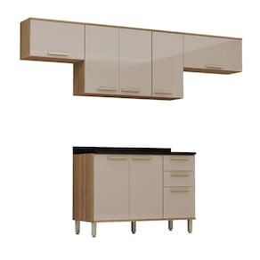 Características Estrutura: 100 MDP Acabamento da Caixaria/Corpo: PF Acabamento das Portas/Frontal: Laca Quantidade de Portas: 8 Tipo de Abertura das Portas: de Bater/Abrir Tipo de Dobradiças: Metálicas 35mm Slow Motion Quantidade de Gavetas: 2 Tipo de Corrediças: Metálicas Telescópicas Tipo de Puxadores: Aste em Plástico Gold Quantidade de Prateleiras: 4 Tampo e Rodatampo: Tampos em MDP 25mm e rodatampo de 6cm de altura Sistema de Montagem: Cavilhas e Parafusos Garantia do Fabricante: 3 meses