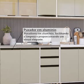A Cozinha Linea foi desenvolvido aliando beleza e praticidade ao seu ambiente. As portas embutidas remetem ao planejado, ainda conta com acessorios requintados como dobradicas em 35mm com amortecimento Slowmotion, dobradica com amortecedor incorporado para fechamento suave de portas, puxadores tipo gola em perfil aluminio na cor Inox e pes em PS -poliestireno- na cor champagne. Possui gavetas com corredicas metalicas telescopicas em tres estagios, para abertura total. Perfeito para sua cozinha.