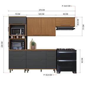 - Profundidade: 53,5 cm (balcões, torre e paneleiros) | 32,5 cm (aéreos)