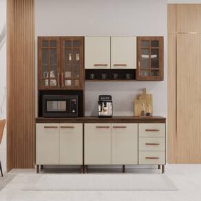 QUANTIDADE DE GAVETAS: 3 | LARGURA (CM): 190 | QUANTIDADE DE PORTAS: 9 | MATERIAL: MDP | ALTURA (CM): 204,5 | PROFUNDIDADE (CM): 53 | TAMPO DO BALCÃO INCLUSO: Sim | QUANTIDADE DE PEÇAS: 3 | Requer Montagem: Sim | Materiais do Corpo: MDP | Tipo de móveis de cozinha: Completa | Inclui manual de montagem: Sim | Marca: Fidelitá Móveis | Estilo: Moderno | Condição do item: Novo | Modelo: Lisboa | Cor: Noce/Off-White
