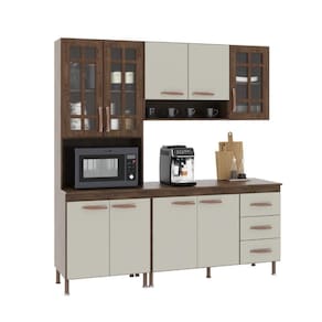 Com módulos avulsos, cada peça é independente, permitindo diferentes composições para melhor aproveitamento do espaço. Seu interior é bem distribuído, com prateleiras e divisórias que auxiliam na organização de utensílios e mantimentos.