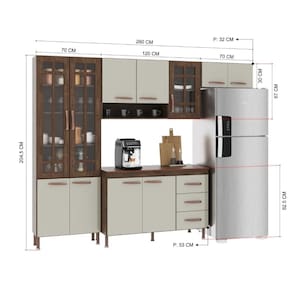 Com módulos avulsos, cada peça é independente, permitindo diferentes composições para melhor aproveitamento do espaço. Seu interior é bem distribuído, com prateleiras e divisórias que auxiliam na organização de utensílios e mantimentos.