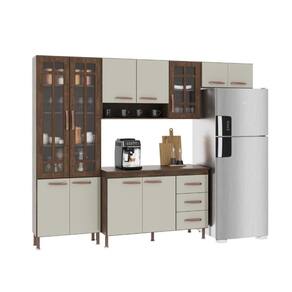 QUANTIDADE DE GAVETAS: 3 | LARGURA (CM): 260 | QUANTIDADE DE PORTAS: 11 | MATERIAL: MDP | ALTURA (CM): 204,5 | PROFUNDIDADE (CM): 53 | TAMPO DO BALCÃO INCLUSO: Sim | QUANTIDADE DE PEÇAS: 4 | Inclui manual de montagem: Sim | Materiais do Corpo: MDP | Requer Montagem: Sim | Tipo de móveis de cozinha: Completa | Cor: Noce/Off-White