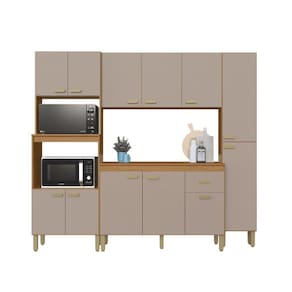 LARGURA (CM): 220 | PROFUNDIDADE (CM): 53 | Tipo de móveis de cozinha: Armário/Balcão | ALTURA (CM): 205 | QUANTIDADE DE PORTAS: 12 | QUANTIDADE DE PEÇAS: 4 | Cor: Freijó/Camurça | TAMPO DO BALCÃO INCLUSO: SIM | Inclui tampo: Sim | Inclui manual de montagem: Sim | Requer montagem: Sim | Marca: Fidelitá Móveis | Estilo: Moderno | Condição do item: Novo | Modelo: Mariana | MATERIAL: MDP