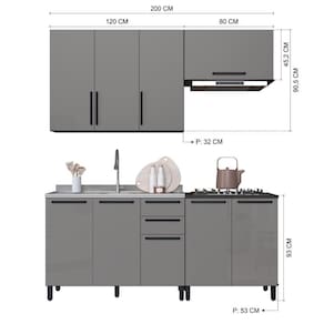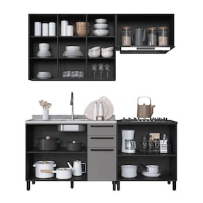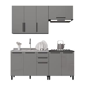 Materiais do corpo: MDP | Altura (cm): 240 | Largura (cm): 200 | Quantidade de portas: 9 | Conteúdo da embalagem: Aéreo 120cm, Aéreo 80cm, Balcão 120cm, Balcão 80cm e Manual de Montagem | Profundidade (cm): 53 | Tipo de móveis de cozinha: Cozinha Compacta | Inclui manual de montagem: Sim | Requer montagem: Sim | Marca: Fidelitá Móveis | Estilo: Moderno | Condição do item: Novo | Cor principal: 1515 - CHUMBO/TITANIO | Cor: Chumbo/Titânio