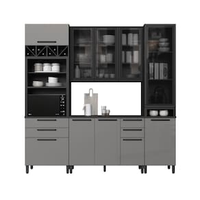 Produzida em MDP de alta qualidade, conta com pintura UV perolizada na cor Titânio e acabamento impecável. Entre os diferenciais estão: dobradiças metálicas com slow motion, corrediças telescópicas, puxadores em metal, prateleira removível e portas com vidro fumê, que elevam o nível de elegância da sua cozinha.