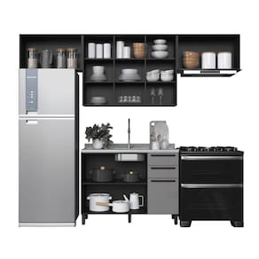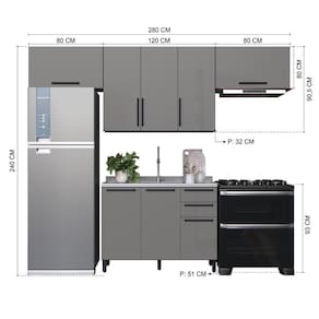 Tipo de móveis de cozinha: Cozinha Compacta | Altura (cm): 240 | Conteúdo da embalagem: Aéreo 120cm, (2) Aéreos 80cm, Balcão 120cm e Manual de Montagem. | Largura (cm): 280 | Profundidade (cm): 53 | Materiais do corpo: MDP | Quantidade de portas: 8 | Inclui manual de montagem: Sim | Requer montagem: Sim | Marca: Fidelitá Móveis | Estilo: Moderno | Condição do item: Novo | Modelo: Mônaco | Cor: Chumbo/Titânio