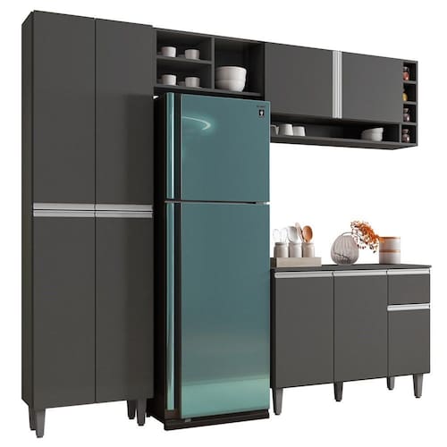 cozinha de acordo com a sua necessidade e com o melhor custo-benefício. Separamos uma opção funcional com tudo o que você precisa otimizando a rotina diária, sendo que suas repartições trazem uma melhor organização por possuir 9 portas com abertura convencional, 1 gaveta, 5 prateleiras e 8 nichos, torna-se uma