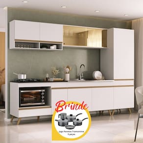 Organização impecável: São 9 portas e 1 gaveta com corrediças metálicas que oferecem uma abertura suave. As 2 portas em vidro reflecta possuem abertura de correr, facilitando o acesso aos itens de cozinha e tornando o ambiente ainda mais moderno. Ainda, o conjunto conta com áreas para organizar utensílios mais altos e nichos versáteis.