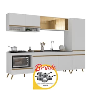 Conteúdo da Embalagem: 1 (um) Balcão para Cooktop com Tampo 105cm 1 (um) Balcão para Pia com Tampo 120cm 1 (um) Armário Aéreo de Cozinha 105cm 1 (um) Armário Aéreo de Cozinha 120cm 1 (um) Paneleiro Cozinha 62cm Kit Ferragem Manual de Montagem