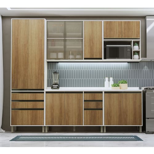 Desenvolvida com materiais de excelência, a Cozinha Linea oferece excelente distribuição de espaço interno para sua organização. É fabricada em 100 MDP oferecendo durabilidade, resistência e fácil manutenção. Conta com portas embutidas e puxadores tipo gola em alumínio dando um toque especial de classe e sofisticação ao ambiente.
