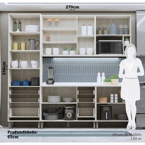 Cozinha Modulada Completa 5 peças 270cm com Vidro Reflecta e Tampo Linea Luciane Móveis - Marrom