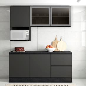 Itens Inclusos: Aéreo 1pt, aéreo nicho micro-ondas, aéreo 2pt vidro, balcão 1pt, balcão 1pt 3gv, acessórios e manual de montagem.