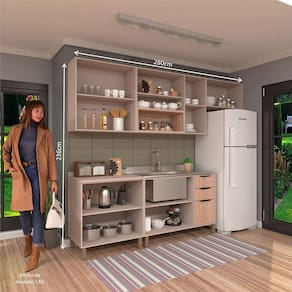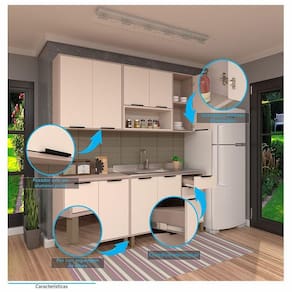 Desenvolvida com materiais de excelencia, a Cozinha Stylo oferece excelente distribuicao de espaco interno. E estruturada em 100 MDP e possui dobradicas slow motion com amortecedor incorporado para fechamento suave das portas. Conta com puxadores tipo aste em Aluminio Preto dando um toque especial de classe e elegancia.