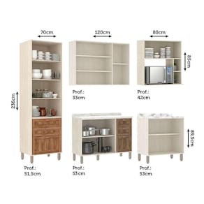 Ambiente composto por: - 1 Balcão de Pia sem Tampo para Cozinha 120cm 2 Portas de Abrir, 3 Gavetas Sofia Luciane Móveis 87 x 120 x 51,5 -Altura x Largura x Profundidade - cm- - 1 Balcão de Cozinha com Tampo 80 cm 2 Portas de Abrir 1 Prateleira Sofia Luciane Móveis 89,5 x 80 x 53 -Altura x Largura x Profundidade - cm- - 1 Armário Aéreo de Cozinha 80cm 2 Portas 4 Prateleiras e Nicho Microondas Sofia Luciane Móveis 85 x 80 x 42 -Altura x Largura x Profundidade - cm- - 1 Armário Aéreo de Cozinha 120 cm 3 Portas 5 Prateleiras Sofia Luciane Móveis 85 x 120 x 33 -Altura x Largura x Profundidade - cm- - 1 Paneleiro de Cozinha 70 cm 2 Portas com Vidro Reflecta Bronze 3 Gavetas Sofia Luciane Móveis 236 x 70 x 51,5 -Altura x Largura x Profundidade - cm- - 1 Tampo para Balcão 120cm MDP Linea Luciane Móveis 2,5 x 120 x 53 -Altura x Largura x Profundidade - cm-