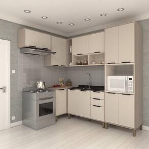 Desenvolvida com materiais de excelencia, a Cozinha Stylo oferece excelente distribuicao de espaco interno. E estruturada em 100 MDP e possui dobradicas slow motion com amortecedor incorporado para fechamento suave das portas. Conta com puxadores tipo aste em Aluminio Preto dando um toque especial de classe e elegancia.