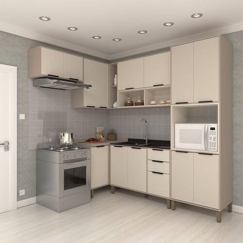 Cozinha Modulada Completa 6 Peças Com Balcões E Aéreos Sem Pia Stylo Luciane Móveis Cinammon-beige - Bege